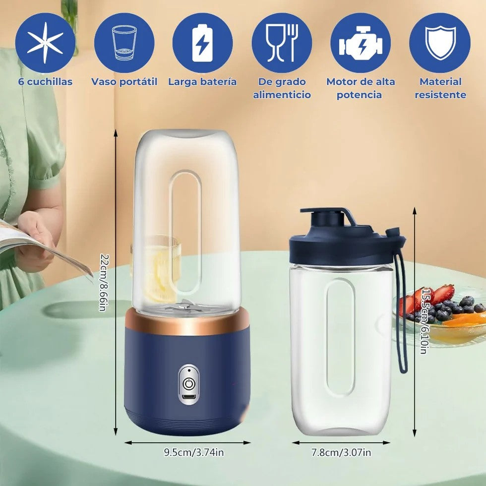 Llévala donde quieras: trabajo, gym, parque o viajes. Se recarga por USB y cabe en cualquier bolso. Tu batido fresco siempre contigo.